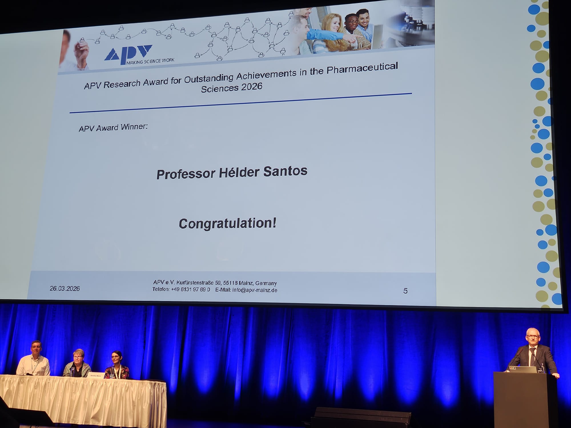 🏆 The APV Research Award for Outstanding Achievements in the Pharmaceutical Sciences 2026 goes to Prof. Hélder A. Santos for his exceptional and influential contributions to the field!